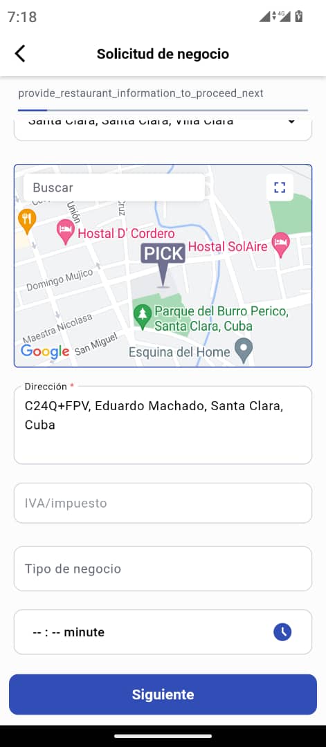 Una vez descargada la aplicación de negocios en https://play.google.com/store/apps/details?id=com.cubans_food.restaurant se procedera a ejecutar los mismos pasos descritos para el registro en la web, esta vez desde su teléfono.