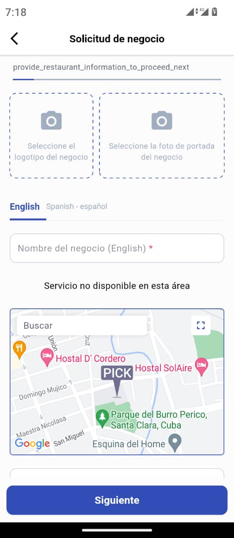 Una vez descargada la aplicación de negocios en https://play.google.com/store/apps/details?id=com.cubans_food.restaurant se procedera a ejecutar los mismos pasos descritos para el registro en la web, esta vez desde su teléfono.